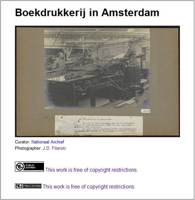 L’apport majeur de la Public Domain Mark réside dans la distinction très claire qu’elle opère entre le « Creator » et le « Curator », c’est-à-dire l’auteur de l’oeuvre qui est tombée dans le domaine public et l’institution qui détient l’original et qui a procédé à la numérisation. C’est cette dernière qui « marque » l’oeuvre numérisée pour attester qu’elle appartient au domaine public. La PDM comporte ensuite plusieurs champs à remplir qui permettent de clarifier les rôles : le nom du Creator y est indiqué (ce qui permet de le citer en cas de réutilisation pour satisfaire aux exigences du droit moral), de même que celui du Curator, mais dans un champ distinct, avec la possibilité d’ajouter un lien hypertexe vers le site de l’institution.  Cet aspect n’est pas anodin, car la PDM assure à l’institution une certaine visibilité et une traçabilité de l’oeuvre en ligne, qui permettra de remonter jusqu’à elle en suivant le lien.
