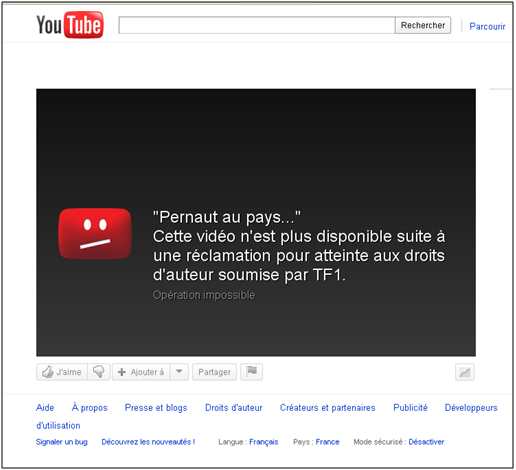 Même si elle paraît choquante, la réaction de YouTube est donc assez logique en France et elle résulte avant tout d’un déséquilibre dans la manière dont est sanctionnée par les juges la responsabilité des intermédiaires techniques que sont les hébergeurs. Aux Etats-Unis, la liberté d’expression en ligne est mieux protégée par la procédure de contre-notification que rappelle Benoît Tabaka et qui est expliquée dans la Fair use Copyright School que j’ai postée plus haut.