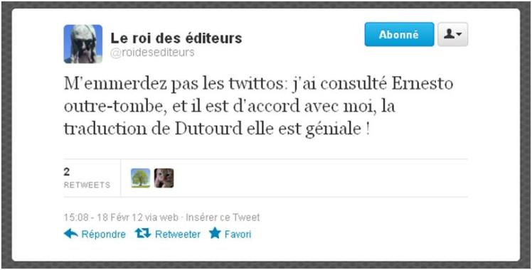 En attaquant François Bon pour avoir réalisé et diffusé en numérique une traduction originale, alors que Gallimard n’en diffuse qu’une ancienne en papier datant des années 50, le Roi des éditeurs s’est pour ainsi dire mis à nu. Qui pourra soutenir encore que le droit d’auteur sert à favoriser l’innovation et la créativité quand il est employé ainsi pour conforter une situation de rente ?