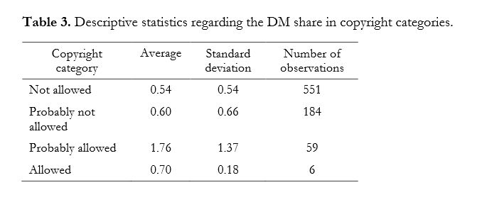 Nous avons démonté que dans les pays où les chercheurs académiques doivent obtenir une autorisation préalable des titulaires de droits pour conduire des opérations de Data Mining dans le respect de la loi, le nombre de travaux de recherche utilisant le Data Mining est significativement moins élevé par rapport au nombre total des articles produits. Le nombre des articles publiés par des chercheurs constitue un indicateur raisonnable de l’innovation au sein des milieux académiques. A notre connaissance, c’est la première fois qu’une étude empirique établit une corrélation négative entre le niveau de protection par le droit d’auteur et la production de nouvelles oeuvres. Du point de vue de la recherche s’appuyant sur le Text et Data Mining, le droit d’auteur semble donc avoir un impact négatif sur l’innovation.