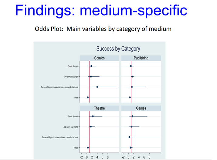 Leur démarche a alors consisté à essayer de déterminer si la réutilisation de contenus du domaine public avait une incidence sur le succès des campagnes de crowdfunding et sur le niveau des montants récoltés. Pour cela, ils ont conduit des observations sur un échantillon de 1933 projets sur Kickstarter dans les domaines des publications, du jeu vidéo, du théâtre et de la bande dessinée.