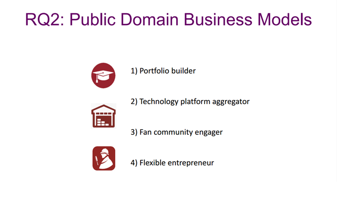 L’étude se penche sur 22 petites entreprises du secteur de la création réutilisant des contenus du domaine public pour produire des produits commerciaux. Par le biais de questionnaires, les chercheurs essaient de comprendre qu’est-ce qui change pour elles par rapport aux entreprises produisant des contenus originaux sur lesquelles elles peuvent revendiquer des droits de propriété intellectuelle ou les obtenir par le biais de licences vis-à-vis de tiers. Ils s’efforcent notamment de déterminer « comment ces entreprises font pour apporter une valeur ajoutée pour leurs clients et comment elles arrivent à garder un avantage compétitif alors qu’elles ne peuvent revendiquer une exclusivité sur les contenus sous-jacents, qui par le biais du domaine public, restent disponibles pour tous« .