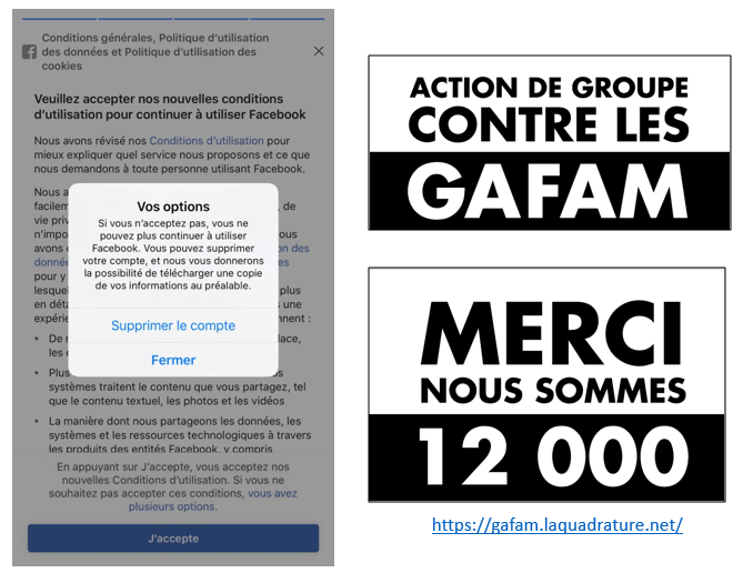 Faire reposer la protection des personnes sur leur consentement individuel est dès lors un pari risqué. Comme le dit Guillaume Desgens-Pasanau : « Il y a 40 ans, la loi informatique et libertés visait à protéger les individus contre le fichage abusif par les administrations et par les entreprises. Aujourd’hui, la question se pose différemment : comment protéger les utilisateurs contre eux-mêmes ? ». Heureusement le RGPD porte aussi en lui le potentiel d’un changement de paradigme vers une défense plus collective des données personnelles. Cela se manifeste notamment par la possibilité de lancer des actions de groupe pour faire valoir les droits de personnes lésées par des violations. L’association La Quadrature du Net a intenté des actions collectives de ce type contre les cinq GAFAM dès l’entrée en vigueur du RGPD afin de dénoncer des atteintes caractérisées au « consentement libre et éclairé » et 12 000 personnes lui ont donné mandat pour les représenter dans cette procédure.